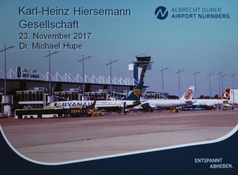 Wir treffen uns (bitte pünktlich um 19 Uhr!)) am Nürnberger Flughafen, Gebäude Tor 1, 2. Stock. Der Weg ist ausgeschildert. Parkmöglichkeit ist in den Parkhäusern am Flughafen gegeben, Ausfahrtstickets werden bereitgestellt.