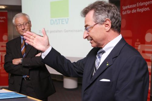 als Referenten für unsere Gesellschaft zu gewinnen. Ihnen die Datev vorstellen zu wollen, hieße Buchungsbelege nach Nürnberg zu tragen. Jedem ist diese berufsständische Genossenschaft, die mit knapp 6000 Mitarbeitern über 700 Millionen Umsatz macht, bekannt. Viele haben als Unternehmer (Nutzer über ihren Steuerberater) oder als Angestellter( z.B. durch die Gehaltsabrechnung) unmittelbaren oder mittelbaren Kontakt mit ihr. Für das Buchhaltungswesen in Deutschland setzt sie die Standards.